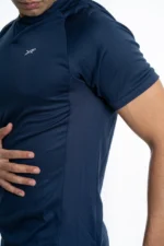 The fabric is designed to keep you comfortable even in highly humid conditions, so you can stay cool and dry all day long. The sleek navy design is versatile and can be paired with anything from cotton trousers to denims for the perfect weekend wear.